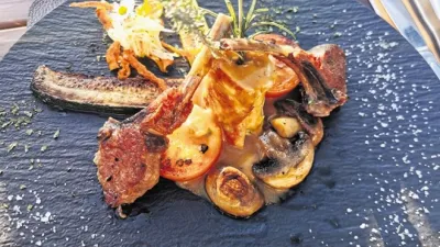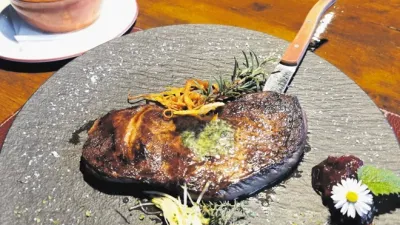 Sirius 2017, eden najboljših in najpolnejših chardonnayjev v državi se je srečal s prvo glavno jedjo: krožnikom, na katerem so kraljevali jagenjčkove zarebrnice in kos prleškega zrezka, kot pravijo svinjskemu fileju, polnjenemu z ajdovo kašo. Oziroma s kombinacijo jagenjčkove zarebrnice in prleškega zrezka, ki ga polnijo s kašo (13 evrov). Priloge so minimalne, malo šampinjonov, malo opečenega paradižnika in marjetice za spomladanski vtis, da meso zasije v polnem sijaju. In skoraj bi pomislili, da se bolje ne da jesti, pa smo dobili še jelenov steak. Najdražja jed v gostilni (22 evrov) je gigantski kos mesa, natančno pečen in neobičajno mehak, pospremijo ga z gratiniranim krompirjem, mi pa smo mu, jasno, dodali še kozarec merlota Skywalker.