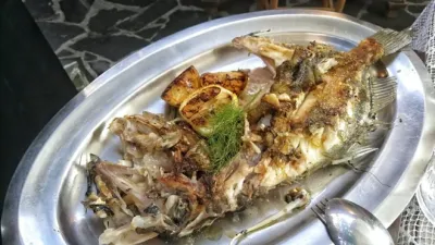 V tisti fazi smo bili že pripravljeni na glavno jed, a je bilo še skoraj poletje, zato niso nič spraševali in vsakemu mirno prinesli še pol porcije polnjenih paprik. Vrhunske so bile in prav nič se nismo pritoževali nad takšno prekinitvijo morske linije.