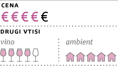 A razburjali se nismo. Pravega prometa na cesti, ob kateri stoji lesena vila oziroma moderni hotel, ni bilo. Vreme je bilo primerno za malicanje, vinska karta pa skoraj popolna, če vemo, da imajo na voljo praktično vsa slovenska in še nekaj zamejskih vin. Škoda le, da v razkošju, ki ga ponujajo, nimajo še kakšnega šampanjca.