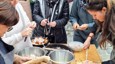 Ob poti domov se je neizogibno porajalo vprašanje, zakaj gastronomi v Sloveniji še niso prišli na idejo, da bi na podoben način združili kulturno dediščino in gostinsko ponudbo. Zakaj naši kuharski mojstri in mojstrice z Michelinovo zvezdico ne slovijo po praktično-didaktičnih kolinah, za sto ali več evrov po glavi? Odgovor se ponuja sam. Kdo bi si pri nas drznil organizirati dogodek v gostinskem obratu, pri katerem bi lahko slehernik sodeloval pri pripravi hrane? Kaj bi na to rekla sanitarna inšpekcija, kaj inšpektorat za varno hrano? In kdo bi (odškodninsko) odgovarjal, če bi se kateri izmed gostov poškodoval z mesarskim nožem ali, še huje, koga drugega, v času nesrečnega dogodka pa bi bil pod vplivom alkohola?