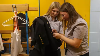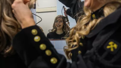Na obraz si je nanesla nekaj bleščic, rudarsko uniformo pa spoštljivo zapela tudi z mislijo na očeta. Članstvo v godbenem društvu se v idrijski kotlini prenaša dedno. »Godbenik je bil že moj oče, igral je 40 let, a zelo mlad umrl. Nadaljevala sem jaz, pa moja sestra, tudi moja otroka sta igrala, dokler nista odšla študirat v Ljubljano. Upam, da se vrneta,« si ne želi, da bi se tradicija prekinila. Pravi, da se sama poskuša pred koncertom predvsem dobro naspati, pred odhodom na oder usta ne smejo biti suha, inštrumenti morajo biti dobro ogreti in med sabo uglašeni. Mladi fantje v sosednji garderobi so prvi napotek očitno izpustili, a našli izhod v sili. »Če se ti ne uspe naspati, se mora človek vsaj pošteno najesti,« je prikimal godbenik s sendvičem v roki.