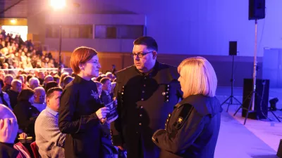 Dirigent Aljoša Deferri, ki godbenike vodi zadnjih nekaj let, ni dvomil vanje. Zanje je imel še zadnji napotek. »Imejte se fajn!« »Glasbenik mora na odru uživati. Resda je za njimi veliko vaj in trdega dela, a na koncu je treba v glasbi uživati.« Do začetka je manjkala še minuta, Deferri pa je še vedno našel dovolj časa, da je povzel program večera od težjih do lažjih skladb. »Orkester je telo, sestavljeno iz več celic. Skupek vseh, vključno z dirigentom, šele zares deluje. Ko dodamo še publiko, nastane med orkestrom, dirigentom in poslušalci en lep trikotnik,« je razmišljal. In potem je pod tribunami zašumelo, da je dvorana polna. Nekoliko je narasel utrip, a z njim tudi ponos. Še stisk rok, pomežik in start na levo nogo. Za tolkalci je iz teme pod odrske luči stopil še preostali pleh: pozavne, klarineti, tube, prečne flavte, oboe, trobente, saksofoni, rogovi in fagoti.
