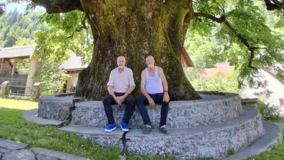 Ob ozkem potoku Koritnice se kar naenkrat odpre širno pobočje pod Gredico. Gredica? »Da, tako imenujemo domačini Rodico,« odvrne Ivan Kemperle, ki nas z bratom Srečkom pričaka pri cerkvici sv. Lamberta, pod pet stoletij staro lipo, ki je zaščitena kot naravni spomenik. Vsaj petsto, morda pa tudi več, kdo bi vedel, ko pa njene točne starosti ne moremo določi, ker so se letnice sesedle in je notranji del debla votel. Toda ena najmogočnejših lip na Slovenskem ima prek osem metrov obsega, preživela je vojne, dva požara, tudi tistega med drugo svetovno vojno, ko je pogorela cela vas. Celo žledolom, ko so pokale njene veje, ujete v oklep ledu. Pod njeno krošnjo so nekdaj sodili, a tudi praznovali, otroci pa so se zatekali v njeno votlo deblo in se igrali.