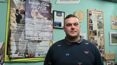 Ivan Černilogar je najstarejši laufar. Družini se je priključil leta 1973, bil je v osmem razredu osnovne šole, ko je pobegnil iz podaljšanega bivanja, ker mu je oče obljubil, da se bo lahko oblekel v enega od pustnih likov. »Oblekel sem se v tisto, kar so mi rekli, nisem imel možnosti izbire. Ampak to sploh ni bilo pomembno, meni je bilo takrat pomembno samo to, da sem lahko zraven,« je pripovedoval. V času priprav vsak večer pride v društvo in po vseh letih in stažu že lahko pove, da se je največkrat našemil v ta terjastega, ki po ulicah podi otroke in utira pot sprevodu. Čeravno: najvišje mesto v njegovem srcu ima ta perjev, lik, narejen iz perja belih kokoši. V larfi oziroma naličju je rezbar upodobil obraz njegovega očeta. »Drži, jaz sem sin od ta perjevega,« se je ponosno nasmejal. Je eden tistih, ki z vsakim dihom potrjuje, da je laufarija eden od stebrov cerkljanske identitete. Vodi nas po prostorih in pove, da pravi laufar za deset let vnaprej ve, kdaj bo pust. »Leta 2030 bo petega marca,« je poznavalsko naznanil ob pogledu na pustni koledar, ki visi na steni.