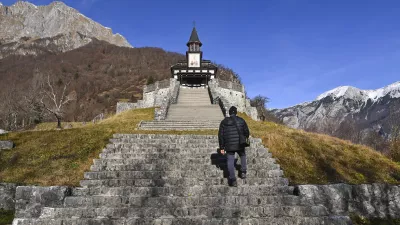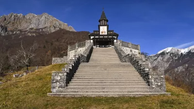 Spominsko obeležje stoji na pobočju, ki je na nadmorski višini 571 metrov, do katerega vodi mogočno stopnišče. Cerkev je zgrajena iz lesa in stoji na kamnitih temeljih. Njen spodnji del je postavljen iz nepravilnih blokov kamna, ki so ga vojaki lomili v neposredni bližini; iz podobnega gradiva sta zgrajena tudi stopnišče in razgledna terasa.