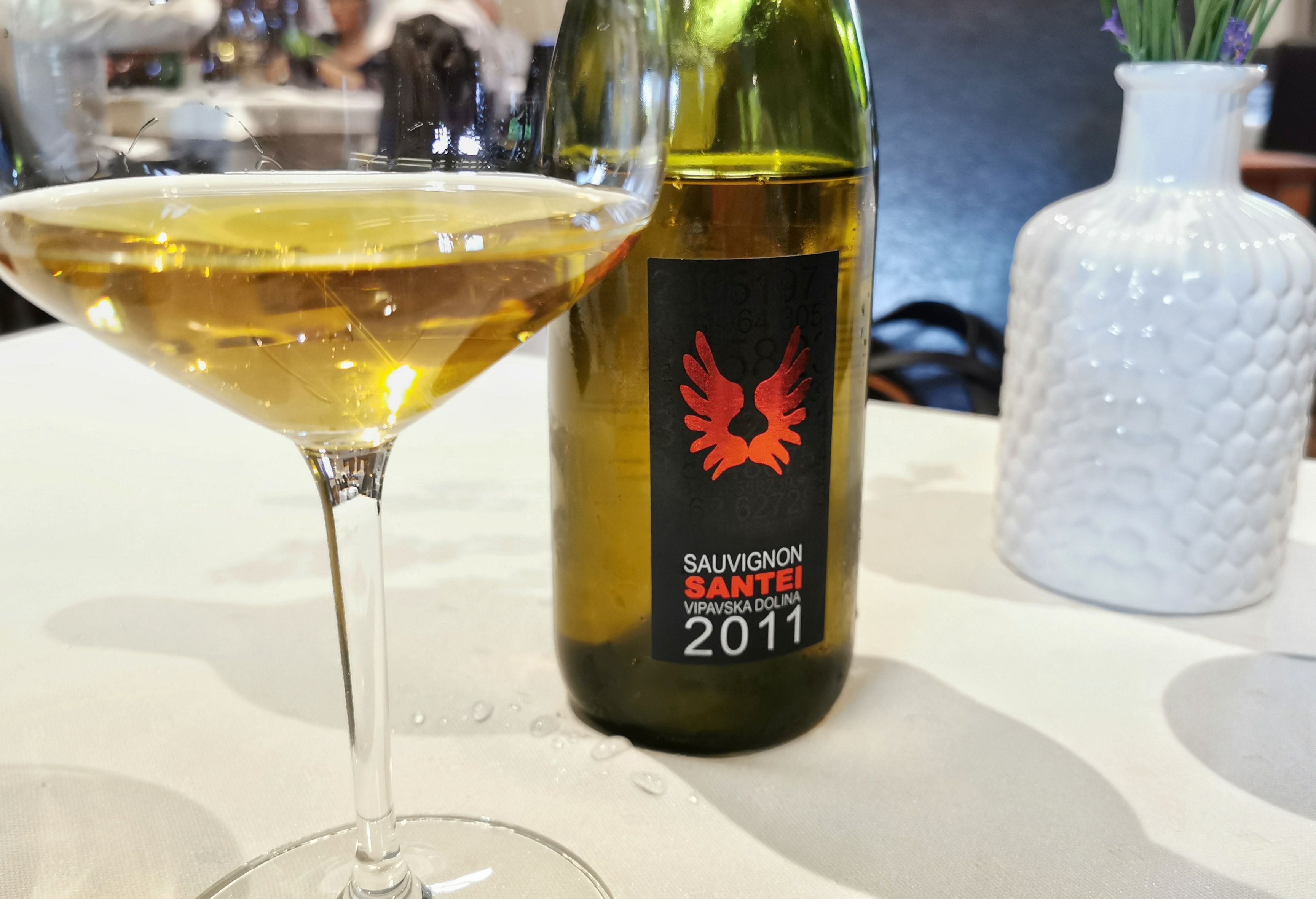 Nadaljevanja, podprtega s sauvignonom Santei iz davnega leta 2011. Takrat so ga še pridelovali po manj ortodoksni metodi kot v današnjih dneh. Bogato in dišeče vino, kakršnih je na žalost vse manj, je prestalo test z ajdovo kašo s pečenim koromačem, omako iz kisle smetane in rezinami črne ter rdeče redkve. In vztrajali smo naprej, druga jed v najdaljšem, devethodnem meniju, ki stane zmernih 79 evrov, je bila piščančja pašteta s konjakom. Dodali so ji češnje, marinirane v sirupu smrekovih vršičkov, ob tem pa so enega najboljših namazov na naših mizah obarvali še kruhov drobljenec, nekaj čokolade, oljčno olje in redukcija jabolčnega kisa.