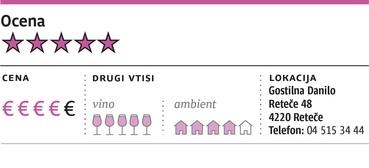 V hiši na poti med Medvodami in Škofjo Loko so jedi še vedno povezane z domačo kuhinjo, le da si v recepte upajo vključiti tudi prestižnejše sestavine. Tako kot so pred leti v sicer enostavno loško mešto dodali tartufe in jed povzdignili v razkošje, zdaj to počnejo praktično z vsemi krožniki, ki prispejo na mizo. Natančno in okusno predelana klasika, ki ves čas pušča vrata odprta za nekaj več. Tudi za kak kozarec vina, ki ga ponuja bogata vinska klet Gašperja Čarmana.