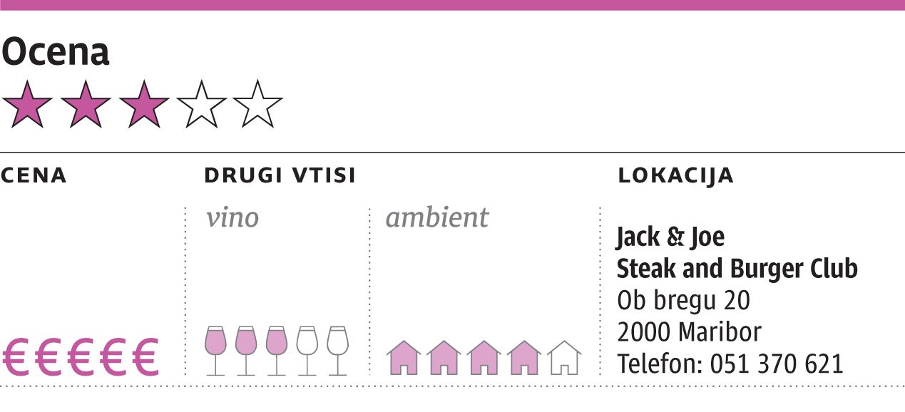 Mariborski Lent se zadnjem času korenito spreminja in verjetno bo, da bi povsem zaživel, potreboval še dva ali tri uspešne gostinske lokale. Trenutno je med najbolj izpostavljenimi enostavnim mesnim receptom podrejen Jack & Joe, ki nas je eno od preteklih sobot naročil, verjeli ali ne, ob pol desetih zvečer. Prej so imeli vse zasedeno. In ravno ta naval po tržnih zakonih krepko vpliva na cene na levem bregu Drave: majhna, 100-gramska porcija tatarskega biftka s popečenim kruhom in maslom, nekaj vložninami, pikantno gorčico ter prgiščem solnega cveta stane 20 evrov in še nekaj drobiža. Govorimo o hladni predjedi za eno osebo, ki je niti ne pripravijo za mizo, kot so nekoč učili natakarje.