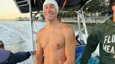 V začetku septembra je 49-letni Newyorčan skočil v vodo na južnem delu Manhattna – in se znova pojavil šele po skoraj 46 kilometrih, ko je preplaval East River, Harlem in Hudson ter sklenil celoten krog okoli otoka. Posebnost? Ves čas je bil v lisicah. In opravil je v manj kot desetih urah. Za ta “zločinsko” težak podvig sta mu Guinnessova knjiga rekordov priznala dva dosežka: najdaljše plavanje na odprtih vodah z zvezanimi rokami ter prvi (in najhitrejši), ki je preplaval okoli Manhattna v lisicah.