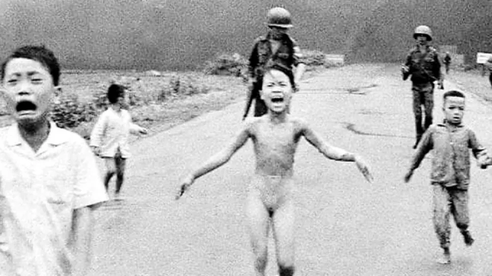 Fotografija iz časov vietnamske vojne ima več naslovov, največkrat Terror of War, velikokrat pa tudi Napalm Girl oziroma Gola deklica beži pred napalmom. Fotografijo je posnel 21-letni vietnamski fotograf Nick Ut. Otroci in ameriški vojaki bežijo pred napadom z napalmom, ki so ga izvedle južnovietnamske sile, pomotoma na lastno naselje. Takrat devetletna deklica Phan Thị Kim Phúc je s sebe strgala gorečo obleko in skupaj z drugimi otroki in ameriškimi vojaki bežala iz gorečega Trảng Bànga. Zanimivo, Nick Ut je ranjenko najprej odpeljal v bolnišnico, potem pa je fotografijo prek agencije AP poslal v svet. In kako je Ut sploh postal fotograf pri 16 letih? Delo je nasledil od svojega brata Huynh Thanh Mya, ki je delal za ameriško agencijo, preden je pri 27 letih umrl na terenu. Dve zanimivosti. Prva: ameriški predsednik Richard Nixon je dvomil o pristnosti fotografije, a fotograf je imel dovolj dokazov o nasprotnem. Druga: Nick Ut že dolga leta živi v ZDA, v modernih časih pa je njegova najbolj znana fotografija tista, ki prikazuje aretirano in objokano Paris Hilton v policijskem avtu.