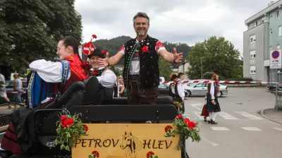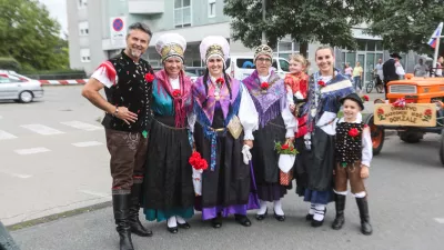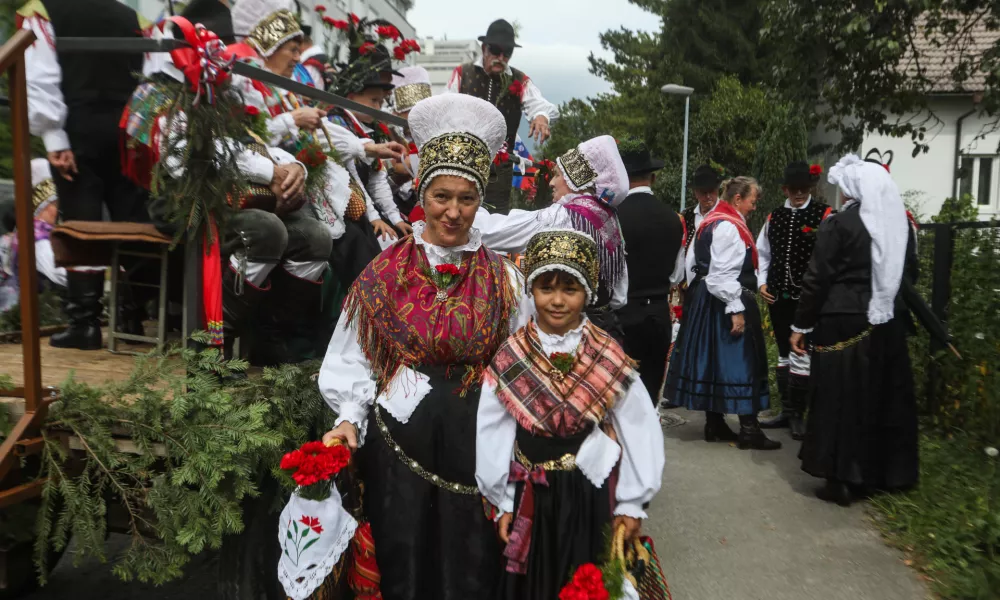 Vesela druščina noš iz Briš pri Kamniku se je pripeljala s traktorjem na lepo okrašenem starinskem vozu. Kar tri generacije so bile na kupu in predstavnica najstarejše Francka Krt nam pove, da ima nošo, ki ji izredno veliko pomeni, že 26 let, obleče pa jo tedaj, ko se najde priložnost za to. »Dobre pol ure se zamudim, da jo oblečem,« prizna in pristavi, da to ni noben problem, ampak eno samo veselje. Elizabeta Štritof doda, da so za noše navdušili tudi najmlajše vnuke, ki imajo izposojene. Radi se oblečejo vanje, še najbolj pa so navdušeni nad parado, saj so zraven tudi glasba, harmonika in seveda dobra volja.