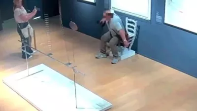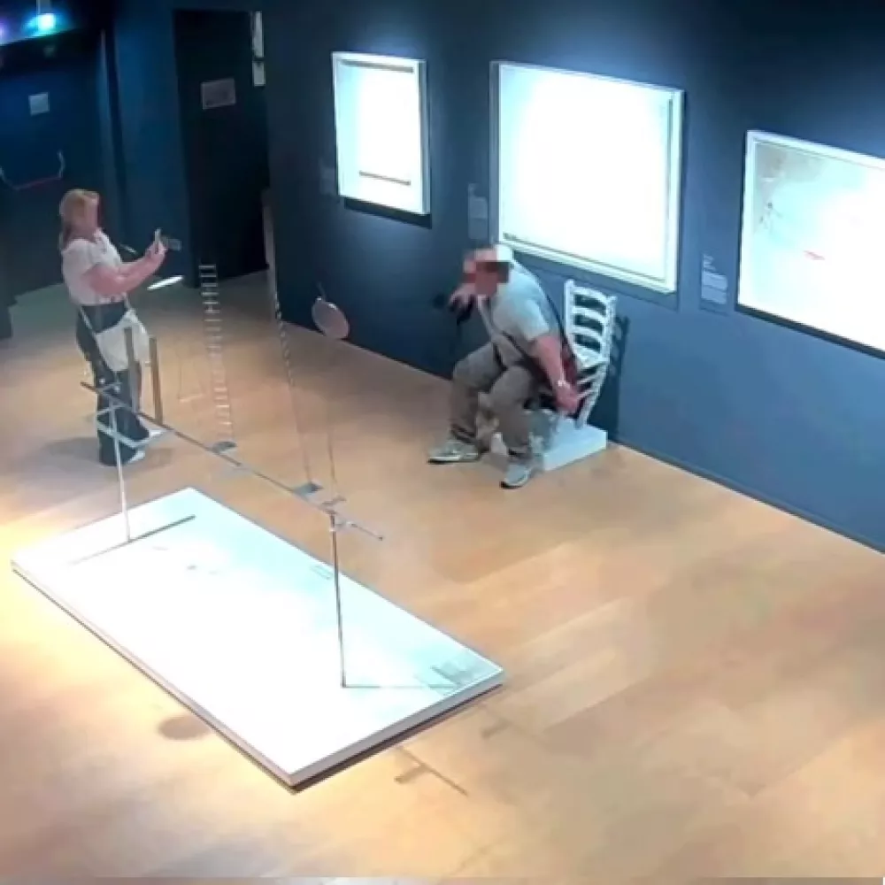 Muzej Palazzo Maffei v italijanski Veroni pred nekaj dnevi: par srednjih let se v lovu za zabavno fotografijo nastavlja pred razstavljenim umetniškim delom, dokler se moški ne spotakne in sesede nanj. S kristali prekritemu stolu, delu italijanskega umetnika Nicola Bolle, zvije noge. Par pobegne iz muzeja in ga še niso izsledili, dogajanje posnamejo nadzorne kamere.
