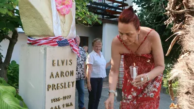 Minuli teden je na predvečer obletnice Elvisove smrti na svojem domu na obronkih Vipavske doline gostil nekaj ljubiteljev Presleyjeve glasbe, združenih v edini uradni Elvisov klub oboževalcev v Slovenji. Slavili so Elvisa in desetletnico obstoja kluba – tako kot se spodobi, ob dobri glasbi in s torto. Še prej so ob kip Elvisa Presleyja, ki ga je na domačem dvorišču postavil Trobec, položili sveče in kralju glasbe obljubili, da mu januarja prihodnje leto, ko bi praznoval 90 let, pripravijo nepozabno zabavo.