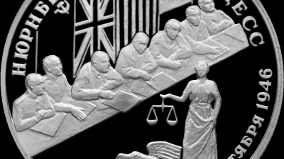 Ruski spominski kovanec iz leta 1995 za dva rublja s ponazoritvijo nürnberškega procesa / Foto: Wikipedija
