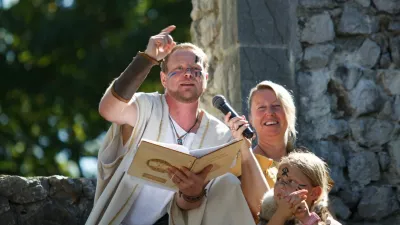 Druid in umetniški vodja Keltskega dne Dominik Gračner je obiskovalcem povedal marsikatero zanimivost. / Foto: ŠUDR