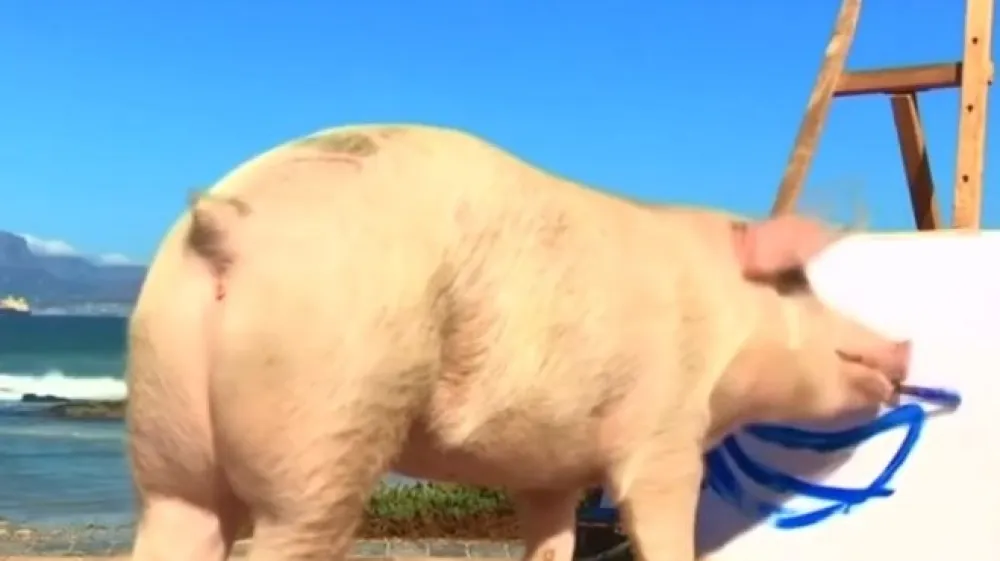 Ko je Joanne Lefson pred gotovo smrtjo rešila prašičjega mladička, prav gotovo ni pričakovala, da bo dobila umetniško navdahnjenega pujsa. V svojem zavetišču za živali s kmetije je Lefsonova opazila, da prašič kaže zanimanje za slikanje. »V resnici so bili čopiči edino, česar ni pojedel,« se je pošalila za National Geographic. Odločila se je, da bo prašiča poskusila naučiti, kako se slika. Trening je bil uspešen in prašič, ki se sedaj imenuje Pigcasso, ima celo svojo spletno stran, prek katere je moč kupiti katero izmed njegovih umetnin. Cena najcenejše slike je približno 700 evrov. Pigcasso sicer nikakor ni prva žival, ki se navdušuje nad slikanjem. Pred njim so to že počeli morski biči, sloni, divje mačke in mnoge druge živali. mg