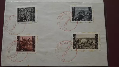 Pred 80 leti so na Slovenskem primorju in v Istri izšle znamke, na katerih je bila prvič uporabljena slovenska beseda. Bile so polne motivov primorja, kot so Solkanski most, Devinski grad, grozd, oljčna vejica, osel pred pristaniščem na Reki, orači polja, Pulj, jata tunov … Serija desetih različnih znamk je izšla leta 1945, ko se je druga svetovna vojna končala in je bila Primorska, od matične domovine ločena z rapalsko mejo, osvobojena. Prve štiri je jugoslovanska oblast predstavila kmalu po koncu druge svetovne vojne, in sicer v Postojnski jami 15. avgusta. Nove znamke je prišlo občudovat kar 15.000 obiskovalcev, je poročal Slovenski poročevalec, jamski poštni urad pa je imel dela čez glavo, saj je bil naval filatelistov prav posebno velik. Dopoldansko otvoritev je prenašal ljubljanski radio z mariborsko relejno postajo, prav tako simfonični koncert popoldne iz plesne dvorane. Trinajstega in 24. decembra so izdali še preostalih šest znamk.