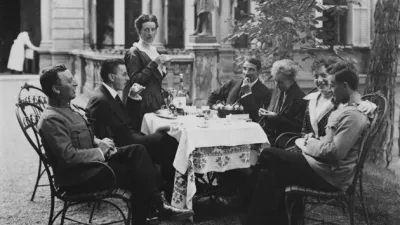Družina Wittgenstein leta 1917 na Dunaju (od leve): Kurt, Paul in Hermine Wittgenstein, Max Salzer, mama Leopoldine Wittgenstein, Helene Wittgenstein Salzer in Ludwig Wittgenstein. / Foto: wikipedia