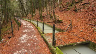 Na drugi strani reke Idrijce pelje feldban (poljska železnica), ki je služil za oskrbo rudarskega mesta. Strm spust v dolino Idrijce so premagali z vzpenjačo pri Divjem jezeru. Za prevoz lesa iz osrčja gozdov do klavž so tudi v teh krajih uporabljali Idrijski lauf. Proga gozdne železnice je bila prvotno izdelana iz lesenih tramov, pozneje so lesene tirnice obložili s pločevino. S pomočjo vozičkov so iz najbolj odročnih gozdnih predelov do plovne vode prevažali predvsem hlodovino in jamski les.