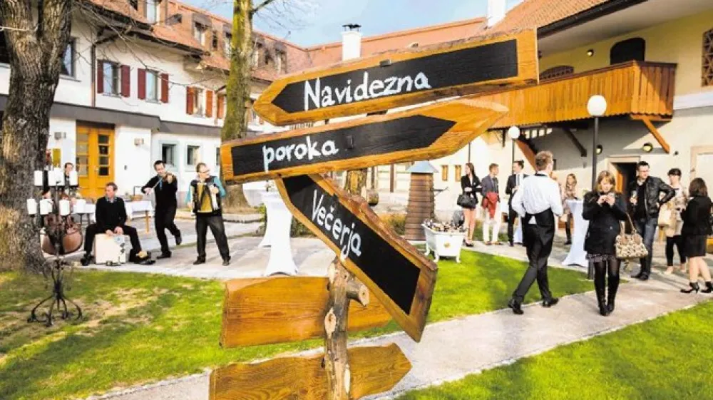 Okoli šestdeset gostov se je tam poistovetilo z vlogo svatov in se – tako kot se na pravi poroki spodobi – veselilo najlepšega dne »ženina« in »neveste«. Seveda niso manjkali niti poročni fotografi, glasbena skupina Trio Kranjc, posebna poročna »torta«, sestavljena iz izvrstnih sirov, in druge dobrote.