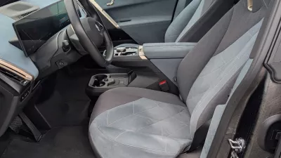 BMW iX v notranjosti ni načičkan in ohranja prostornost. Tako zelo, da ji nekateri pravijo celo dnevna soba. Hkrati se izogne minimalistični puščavi. Ne boji se ornamenta, tam, kjer ta ustvari dober vtis. Razume voznika, kaj potrebuje in česa ne. Vsaj večinoma. Tudi pri snovanju iX so oblikovalci namreč nasedli zablodi o selitvi večine ukazov za funkcije s fizičnih gumbov na zaslon, a vseeno ohranja vsaj nekaj taktilne poezije. Zlasti čvrsta ročka za smerna kazalnika se premika z užitkom. Izkažejo se tudi kolesca in gumbi na sredinski konzoli.