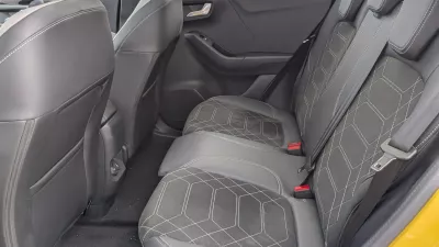 Za volanom fordov človek pogosto dobi vtis, da so interier uredili zlasti pragmatično, pri pumi pa je treba pohvaliti ličnost dizajna. Všečni kontrasti barv, materialov in dokaj okusno dinamične linije. Potem pa pogledaš na voznikov zaslon in sredinsko tablico, pa te zopet vrne med delovne stroje. Oba zaslona delujeta poceni in na silo umeščena na svoji mesti.