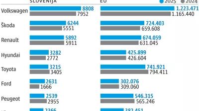 Prodaja osebnih avtomobilov na obeh naših trgih, torej slovenskem in tistem Evropske unije, se je lani gibala skorajda povsem v mejah napovedi in pričakovanj. Na obeh so tako prodali nekaj več avtomobilov kot leta 2024 (v Sloveniji za 8,5 odstotka, 57.714:53.159, v EU pa za 1,8 odstotka, 10.822.831:10.631.346), kar pomeni, da se je krivulja po covidnem obdobju vzpenjala že tretje leto zapored, je pa res, da je zaostanek za zlatim predkoronskim obdobjem še vedno velik.