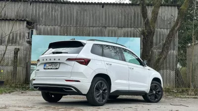 Tudi pogonski sklop pri testnem primerku, ki sta ga sestavljala turbobencinski motor s 150 konji (110 kilovati) in 7-stopenjski samodejni menjalnik, svoje delo opravi popolno, tako z vidika odzivnosti in več kot zadostne moči kot z vidika varčnosti, saj se je kljub izostanku danes tako priljubljene elektrifikacije poraba bencina ustavila pod sedmimi litri. Upoštevajoč vse zapisano pa tale karoq svojo ceno povsem upraviči.