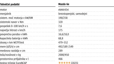 Mazda 6e zato deluje kot avtomobil za kupce, ki elektrifikacijo sprejemajo brez navdušenja nad tehnološkim spektaklom. Za tiste, ki si želijo tišine, udobja in elegance, ne pa nujno najhitrejšega pospeška ali najbolj naprednega zaslona. In prav v tem zadržanem pristopu je njen največji adut. Električni svet morda ne potrebuje še ene revolucije – včasih je dovolj dobro izvedena evolucija.