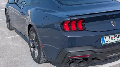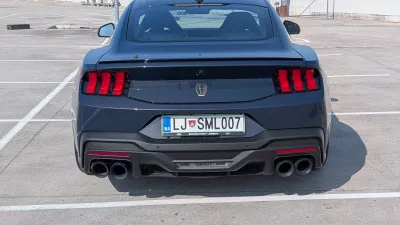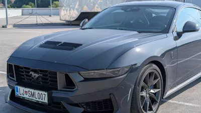 Na prvo vožnjo s testnim mustangom dark horse sem se odpravil sredi prometne konice skozi središče Ljubljane in mimo ozkega grla pri Orto baru. Zanimiva izkušnja. Na eni strani promet, ki se ni želel premikati hitro, na drugi strani vozilo, ki se ni hotelo premikati počasi. Nekje do železniške postaje sem usvojil, kako minimalen dotik stopalke za plin je ob desetstopenjskem samodejnem menjalniku še dovoljen, da se avto nadzorovano premika centimeter za centimetrom in z največ desetimi kilometri na uro. Pri tem je bilo treba v nekaterih primerih upoštevati tudi zajetne dimenzije mustanga. Ta je dolg kar 4,8 metra in z ogledali širok 2,08 metra. Recimo, da ni najbolje prilagojen za vožnjo po ozkih ulicah Črnega Kala.