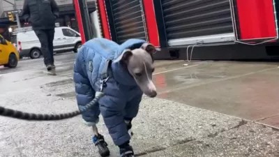Na prvi pogled je videti kot prizor iz kakšnega nemega filma ali morda kot poskus astronavta, ki se privaja na zmanjšano težnost na Marsu. Toda v resnici gre za Grega, malega italijanskega hrta, viralne senzacije, ki se sredi zime sooča z enim največjih izzivov sodobnega psa: nošenjem čevljev.