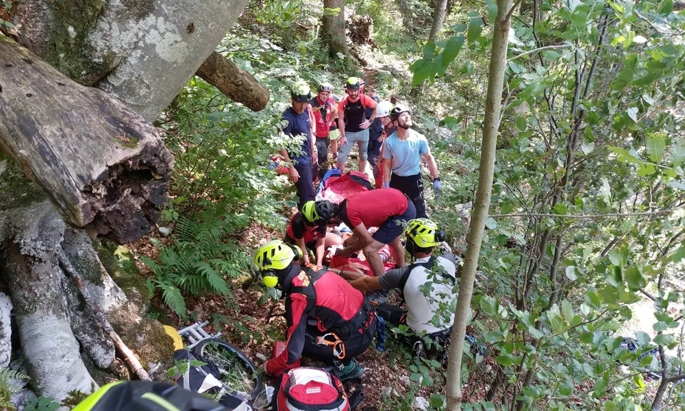 Reševalne ekipe so več dni z droni, psi, iz zraka s helikopterjem in peš po terenu iskale pogrešanega 54-letnega moškega, ki se je prejšnji teden odpravil na pohodniško turo na Skuto v osrčju Kamniško-Savinjskih Alp, svojci pa so z njim kasneje izgubili stik. V ponedeljek so ga pod neoznačeno potjo čez Žmavčarje našli mrtvega. Med reševalno akcijo na strmem in težko dostopnem gorskem terenu se je poškodovalo več članov ekipe. Pri zdrsu se je lažje poškodoval policist, deblo, ki je zdrsnilo po strmini, pa je oplazilo gorskega reševalca, a nobeden od njiju ni potreboval zdravstvene oskrbe. Drugače pa je bilo z gorskim reševalcem GRS Kamnik, na čigar nogo je padla skala. Hudo poškodovanega so že na kraju oskrbeli člani reševalnih ekip, potem pa so ga z vojaškim helikopterjem odpeljali v ljubljanski klinični center.