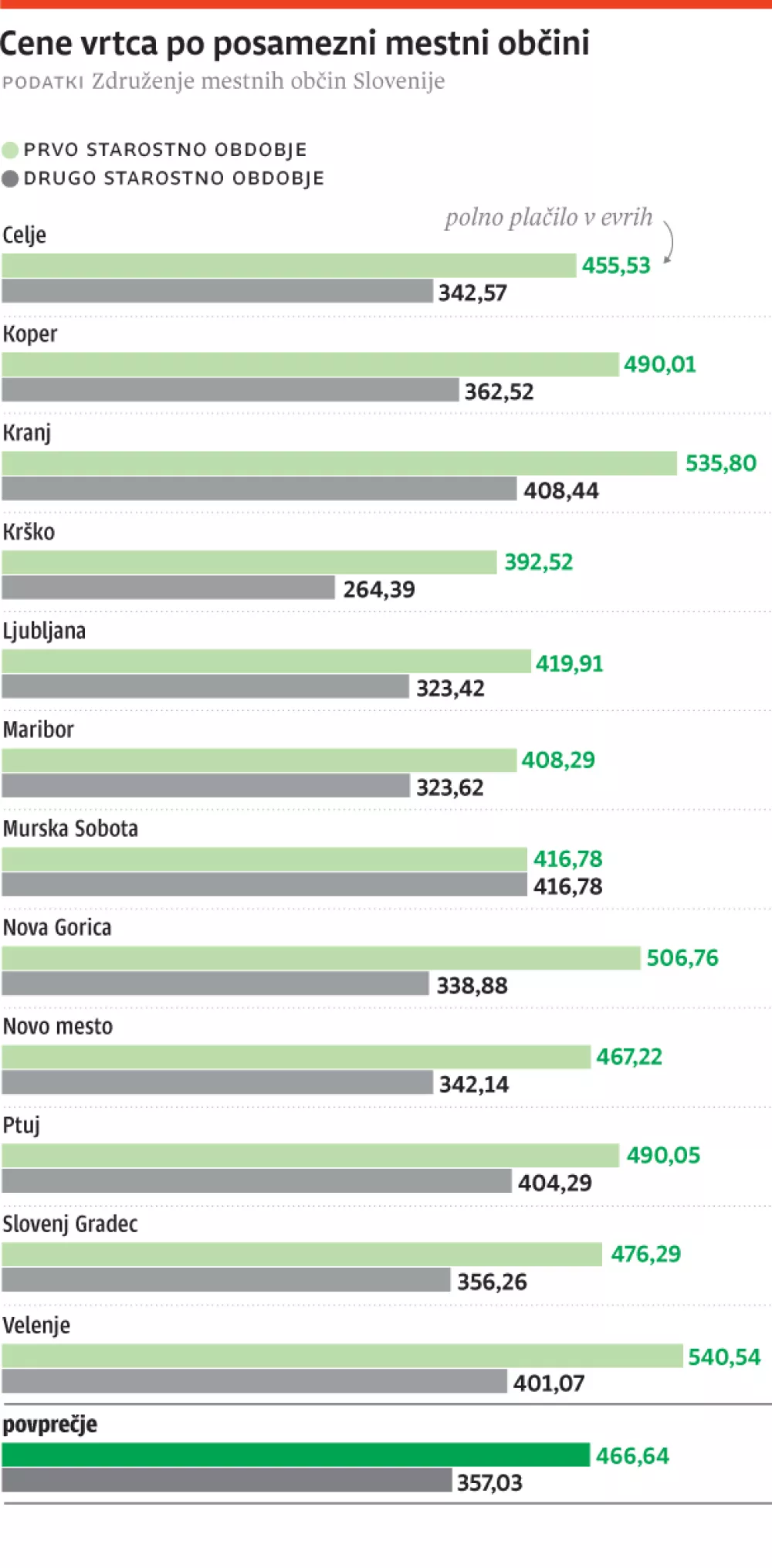 »Vrtcev ne bomo dražili. Do konca junija zagotovo ne, potem pa bomo še videli,« je zagotovil župan Janković, ki je tudi dejal, da so ljubljanski vrtci med najcenejšimi v državi. Po podatkih Združenja mestnih občin Slovenije se strošek vrtcev za prvo starostno obdobje (med 1. in 3. letom) v mestnih občinah giblje med 540 evri (Velenje) ter 390 evri (Krško). Družine z najvišjimi dohodki morajo v prestolnici odšteti skoraj 420 evrov, tiste z najnižjimi pa nekaj več kot 50 evrov. Starši z najnižjimi dohodki morajo za vrtec največ odšteti v Velenju, in sicer okoli 70 evrov. Podobno je tudi razmerje za drugo starostno obdobje, v katerem so otroci med 3. in 6. letom. Tudi v tej kategoriji je prestolnica med ugodnejšimi, saj se plačilo giblje med 323 in 40 evri. Tisti z najnižjimi dohodki v primerjavi z Ljubljano manj plačajo samo še v Mariboru, in sicer 37 evrov, najmanj pa v Krškem, kjer mora družina z najnižjimi dohodki za otroka v vrtcu odšteti okoli 34 evrov.