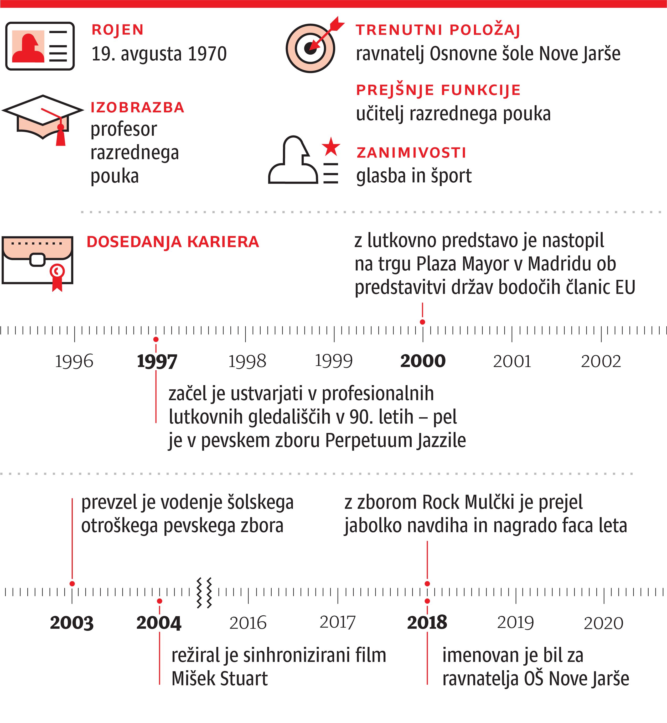Leta 2003 je prevzel vodenje šolskega pevskega zbora. Prvih deset let so sledili repertoarju, ki je bil »predpisan« za otroško zborovsko petje. Na začetku je v zboru pelo pet do deset ust. Počasi so se začeli lotevati tudi različnih glasbenih žanrov, od zimzelenih do pop in rock skladb, bluza, džeza, tudi klasične in narodnozabavne glasbe. Danes v zboru 101 mulec prepeva pesmi, ki so jim blizu, in išče svoj glasbeni izraz. Pri tem se veliko pogovarjajo o sporočilih pesmi, ki jih prepevajo. Včasih jim analiza besedila vzame tudi po več dni. Predvsem če gre za aktualna družbena vprašanja: sovraštvo, mobing, droge, vojna, mir, ljubezen, smrt. Seveda, kot pove, brez podpore in razumevanja staršev ne bi šlo. Leta 2015 so na pobudo Rock mulčkov, ki so izrazili željo pomagati sovrstnikom, ki si ne morejo privoščiti počitnic na morju, pripravili prvi dobrodelni koncert. V sodelovanju z Anito Ogulin in z Zvezo prijateljev mladine Ljubljana Moste - Polje so do zadnjega kotička napolnili Španske borce. Z Rock mulčki so na odru med drugimi peli Pepel in kri, Lado Leskovar, Tokac in Hamo, ki si je takrat šele utiral pot na vrh glasbene scene.