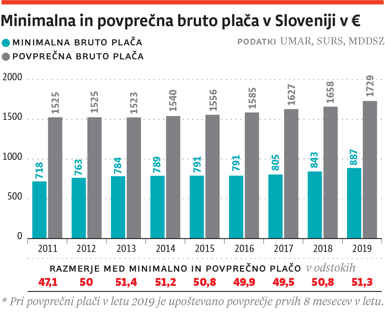 Po podatkih Statističnega urada RS (SURS) je minimalno plačo v Sloveniji julija letos prejelo 42.976 delavcev, kar je približno 5,4 odstotka vseh zaposlenih. Glede na podatke o strukturi plač iz leta 2017 je tedaj plačo, ki je bila nižja od novega zneska minimalne plače v višini 940,58 evra bruto, prejemalo približno 98.000 oseb ali okoli 17 odstotkov vseh zaposlenih. Ker so omenjeni podatki že nekoliko zastareli, obenem pa je v zadnjih letih prišlo tudi do kar občutne rasti plač, na ministrstvu ocenjujejo, da je danes ta številka bistveno nižja.