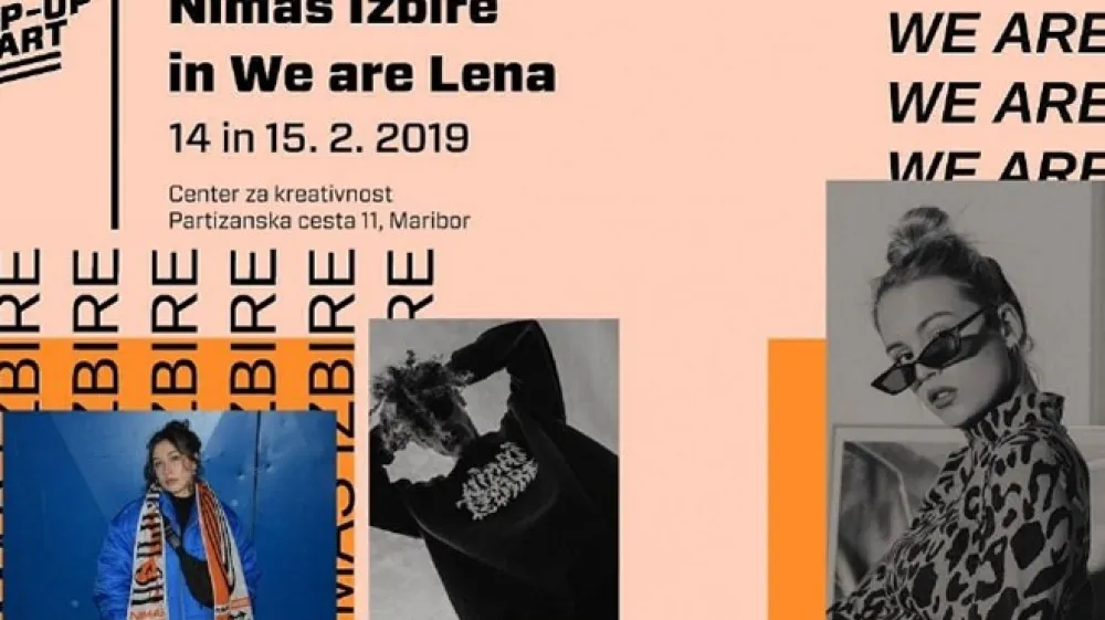 V ciklu Pop-Upstart dogodkov vsak mesec gostijo slovenske oblikovalce z različnih področij kreativnega in kulturnega sektorja ter jim omogočijo, da svoje izdelke predstavijo novemu, širšemu občinstvu. Predstavitveni pogovor z vsemi ustvarjalci in posebnimi gosti bo potekal danes, v četrtek, 14. februarja, od 18. ure dalje v Projektni pisarni Centra za kreativnost na Partizanski cesti 11 v Mariboru. Sledilo bo odprtje pop-up trgovine, v kateri bodo izdelki iz nabora znamk Nimaš Izbire in We Are Lena vse do 22. ure na voljo po posebnih cenah; enako tudi v petek, 15. februarja, od 10. do 18. ure.