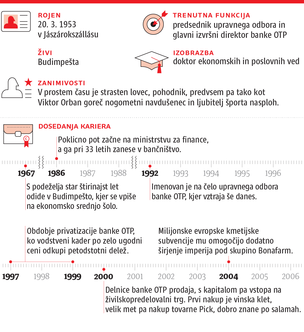 Za Ljubljano je morda zanimivo dejstvo, da je Csányi pred tem kot vodja revizijskega oddelka delal tudi v eni prvih komercialnih bank Magyar Hitelbank, kamor ga je konec osemdesetih zvabil danes pokojni Sándor Demján, premožni bančnik in prvi mož Trigranita, ki je pred leti v javno-zasebnem partnerstvu s Slovenskimi železnicami načrtoval potniški center Emonika. Prav ljubljanski potniški center naj bi bil eden prvih projektov, ki ga bo OTP Bank podprla pri nas, pri čemer Csányi ne skriva, da jih zanimajo tudi drugi posli, predvsem v kmetijstvu in živilskopredelovalni industriji.