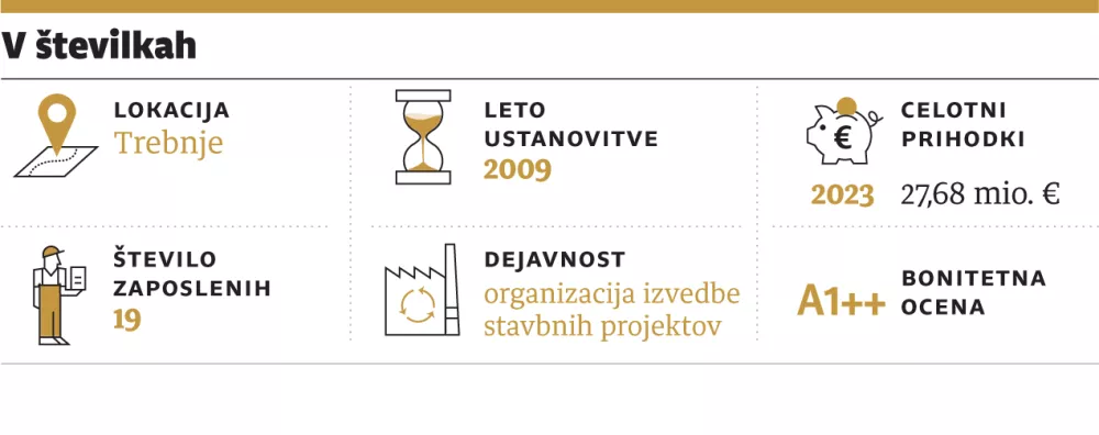 Direktor Jure Višček je podjetje ustanovil leta 2009, danes pa podjetje lahko konkurira tudi največjim v panogi. Nekdanji rokometaš kluba Trimo Trebnje, katerega podpredsednik je še danes, pravi, da je zanj vsakodnevni izziv pridobivanje čedalje večjih projektov. "Zelo sem tekmovalen, ko si v glavo vpičim nek projekt, razmišljam skoraj samo še o tem, kako ga pridobiti oziroma kako ga čim bolje izpeljati." Način razmišljanja, ki ga zlahka pripišemo nekdanjemu aktivnemu športniku. Ki, mimogrede, še danes vsak dan vstane ob petih zjutraj in še pred prihodom v službo preteče od osem do deset kilometrov, čemur sledi še po sto trebušnjakov in sklec.