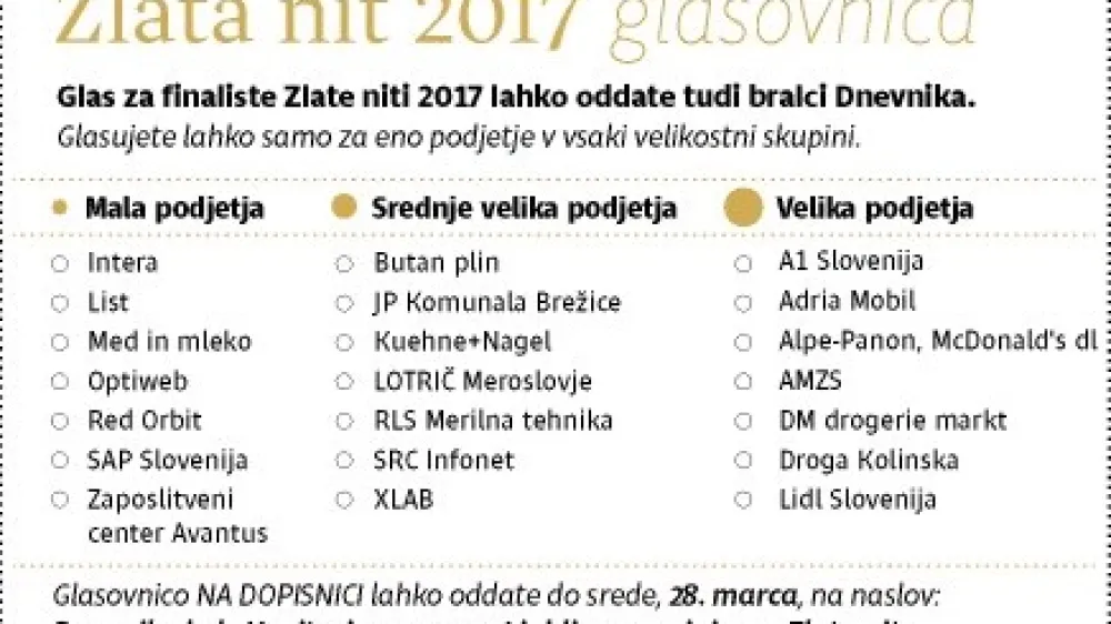 »Kakovost odnosov se v našem podjetju občuti in verjamemo, da je prav to eden od razlogov, da smo uspešni. Zanimalo pa nas je, kje smo v primerjavi z drugimi podjetji. Zato smo se odločili za Zlato nit. Prav tako smo želeli spoznati o sebi kaj novega, da lahko postanemo še boljši. Ne nazadnje je bil cilj z izborom izkazati pohvalo vsem našim zaposlenim, ki se vsak dan trudijo, da so naše stranke lahko še uspešnejše. Zelo dobro se zavedamo, da smo podjetje odličnih posameznikov, ki tvorijo uspešne ekipe skozi različne oddelke in našim strankam zagotavljajo vrhunski servis ter inovativne rešitve na področju logistike,« je razloge za sodelovanje podjetja v Dnevnikovem izboru najboljših zaposlovalcev nanizal direktor Borut Vrviščar.