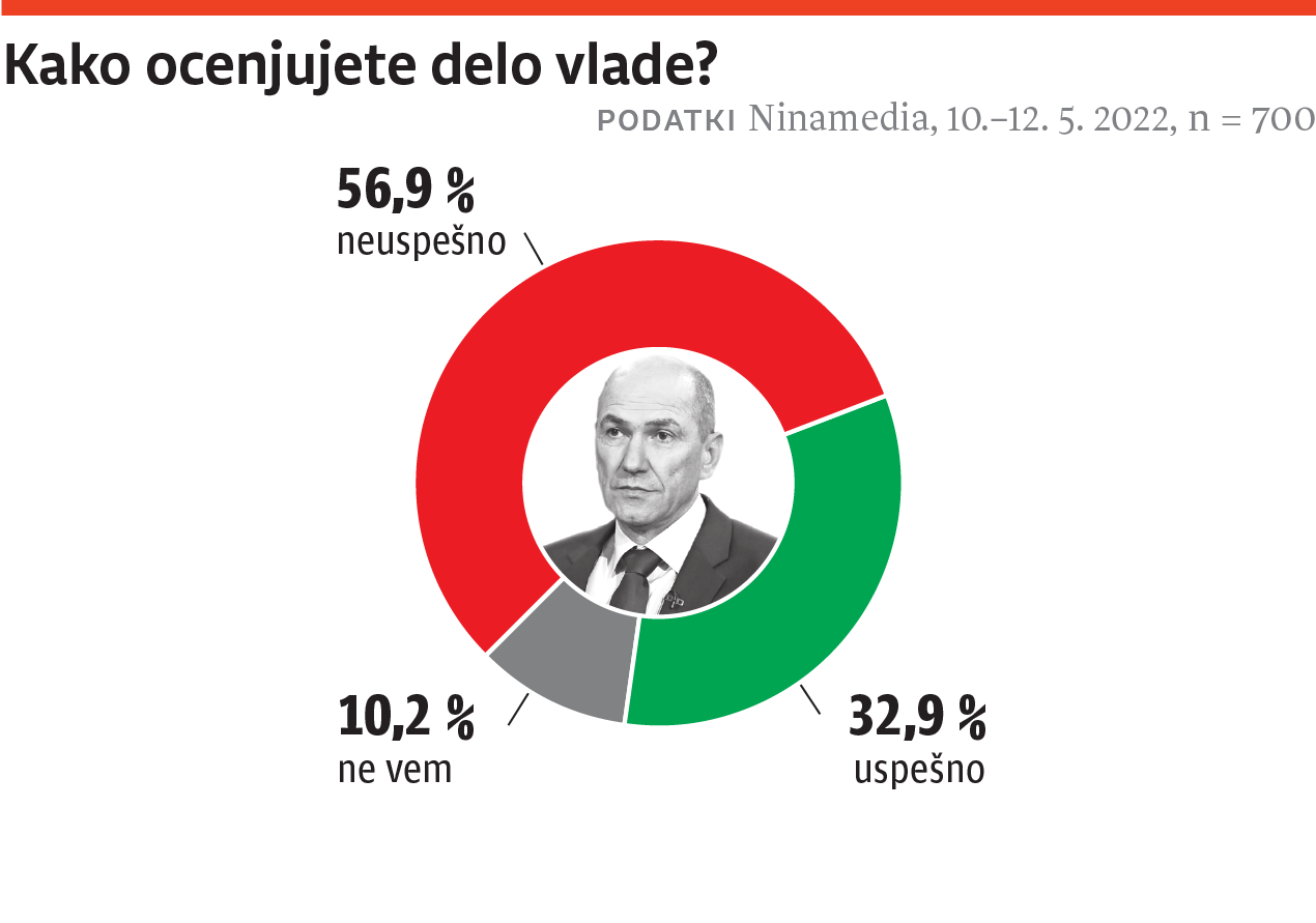 Na drugi strani se odnos do vlade v slabem mesecu po volitvah ni bistveno spremenil. Podoba vlade Janeza Janše se v zadnjih dneh pred iztekom mandata v očeh javnosti ni izboljšala. Da je bil Janša s svojo ministrsko ekipo neuspešen, meni slabih 57 odstotkov sodelujočih v anketi Vox populi, da je bila vlada uspešna, pa skoraj 33 odstotkov vprašanih. Takšno razmerje med ocenama je na ravni minulih mesecev. Do prihodnjega izvajanja raziskave javnega mnenja bi že lahko dobili novo vlado in takrat bomo lahko verjetno ocenjevali, kakšno podporo uživa vlada Roberta Goloba.