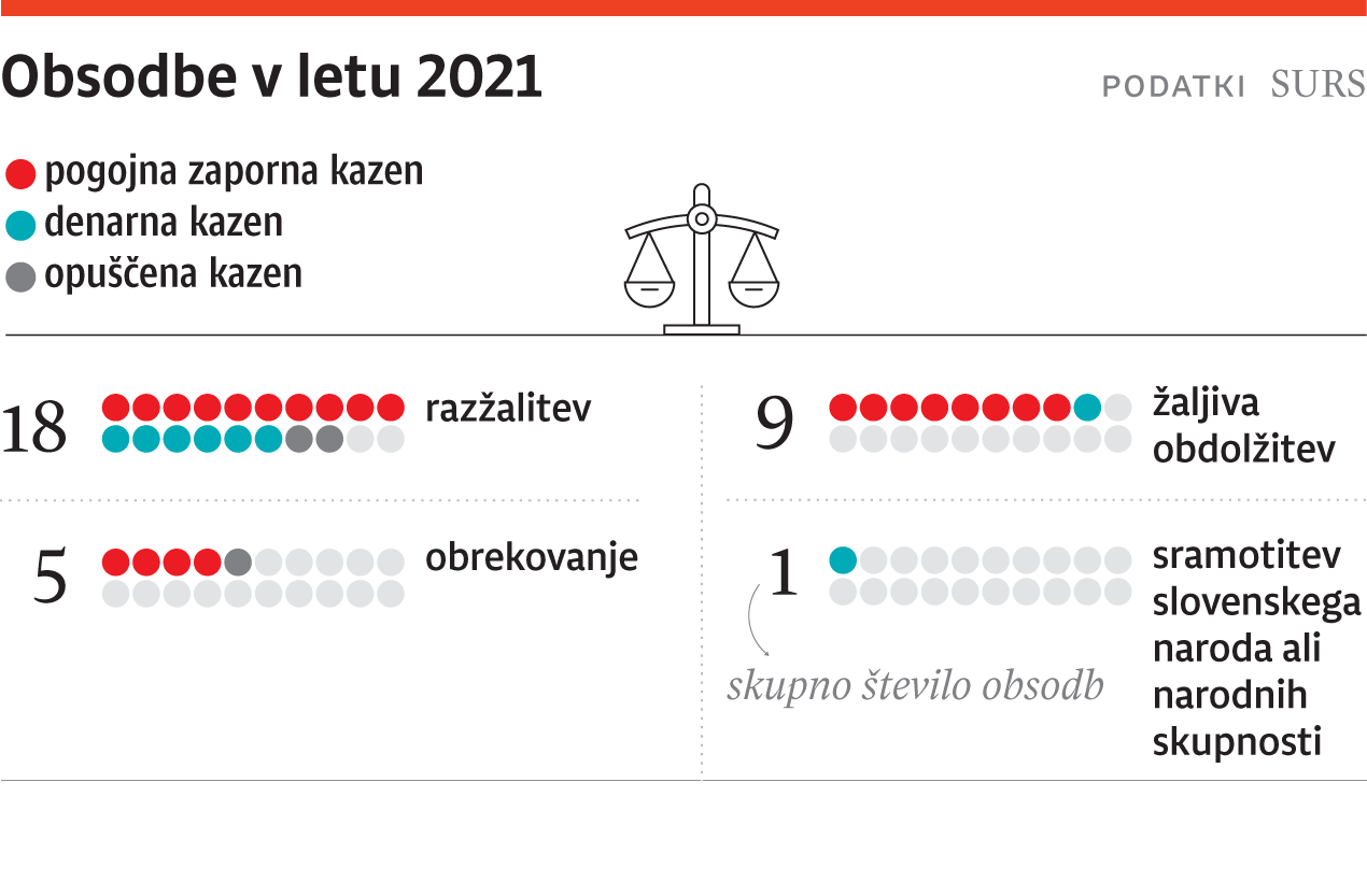 Kot kažejo podatki statističnega urada, kazniva dejanja zoper čast in dobro ime sicer drastično ne obremenjujejo kazenskega sodstva, saj niso izjemno pogosta; število obsojenih zaradi kaznivih dejanj zoper čast in dobro ime se zadnja leta celo znižuje.