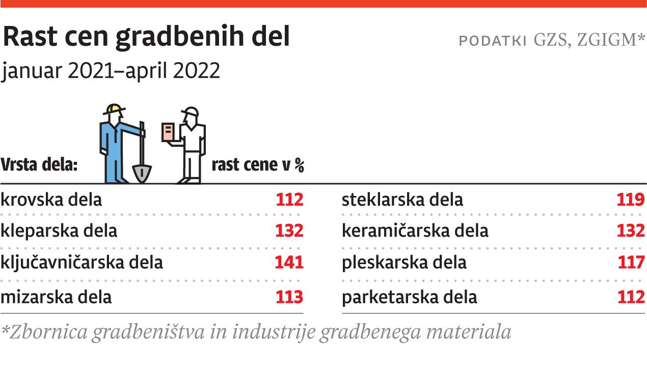 Po podatkih zbornice gradbeništva in industrije gradbenega materiala pri GZS tožbe o podražitvah tokrat niso iz trte izvite; tako materiali kot storitve so se od lanskega januarja do konca letošnjega aprila drastično podražili (podatki so v tabelah). Že drugo leto zapored opažajo izrazito rast cen denimo armaturnega železa, cementnih, opečnih, bitumenskih in polimernih izdelkov, vodovodnih in kanalizacijskih cevi ter seveda zemeljskega plina in nafte. »Vzroki podražitev so v skoraj triletni zdravstveni krizi in trenutnem zunanjepolitičnem položaju v Ukrajini in so vezani na globalno, ne samo na lokalno okolje. Ta dva dogodka sta povzročitelja inflacije. Hkrati se je pojavilo izrazito pomanjkanje omenjenih surovin tako na slovenskem trgu kot na trgih EU,« je pojasnil Gregor Ficko, direktor zbornice gradbeništva in industrije gradbenega materiala pri GZS.