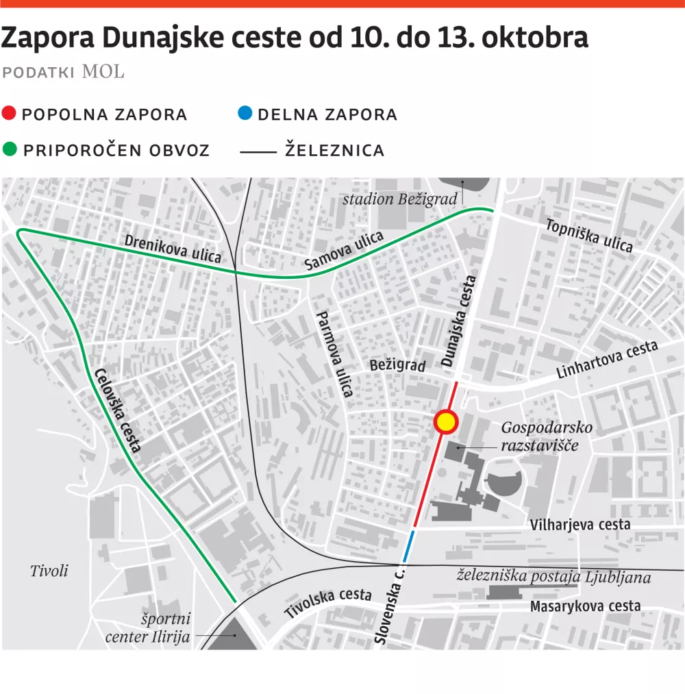 Pojasnil je, da bodo cesto zaprli zaradi varnosti udeležencev. Javno podjetje Ljubljanska parkirišča in tržnice bo oznake in prometno signalizacijo postavilo v petek ob 5. uri, policija pa bo varovalne ograje postavila med 7. in 8. uro. Konec zapore je predviden v ponedeljek med 18. in 19. uro, a je odvisen od zaključka aktivnosti na Gospodarskem razstavišču.