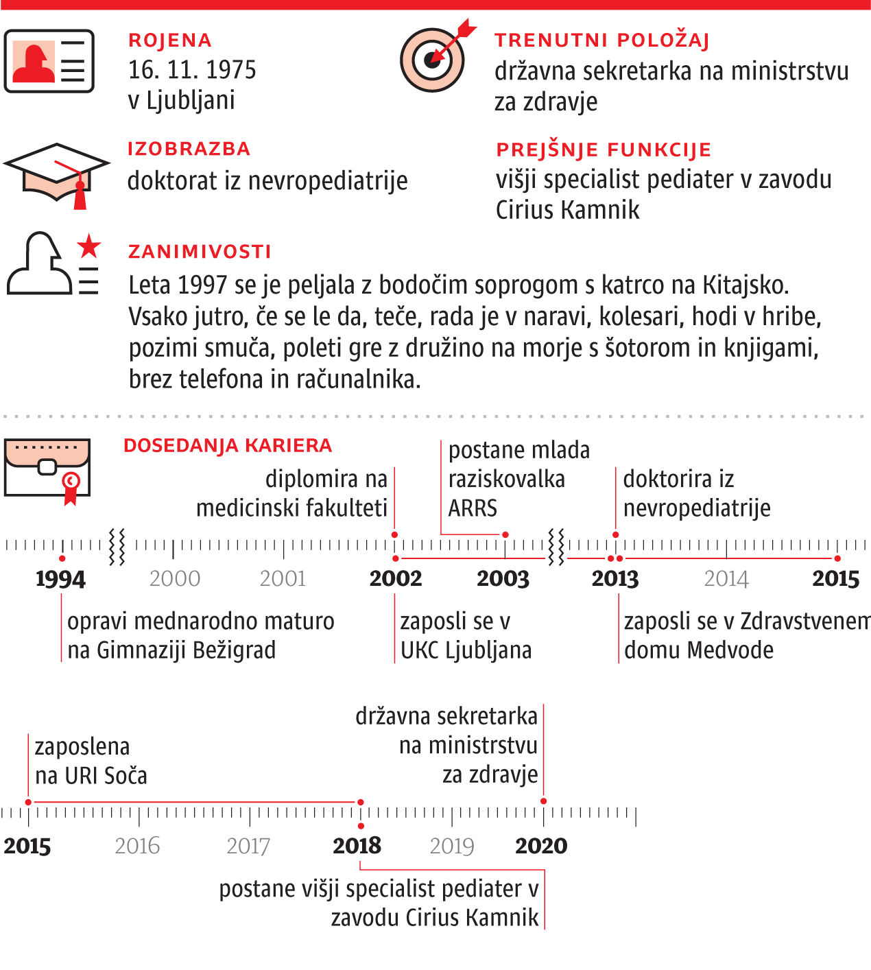 Kako to, da se je potem odločila za politiko? Ko so jo klicali, je bila bližje temu, da ponudbo odkloni, kot pa da jo sprejme. Sledil je pogovor z ministrom Tomažem Gantarjem. Potem se je odločila. Zakaj? »Zelo veliko stvari me moti v našem zdravstvu. Medicina je kljub vsemu timski šport.«