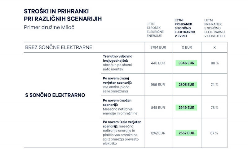 Trenutno govorimo o nekaj možnih scenarijih z različnimi finančnimi posledicami za lastnike. V tabeli spodaj najdete podatek o prihranku pri različnih scenarijih v konkretnem primeru družine Milač, podrobnosti izračunov pa si lahko preberete TUKAJ.