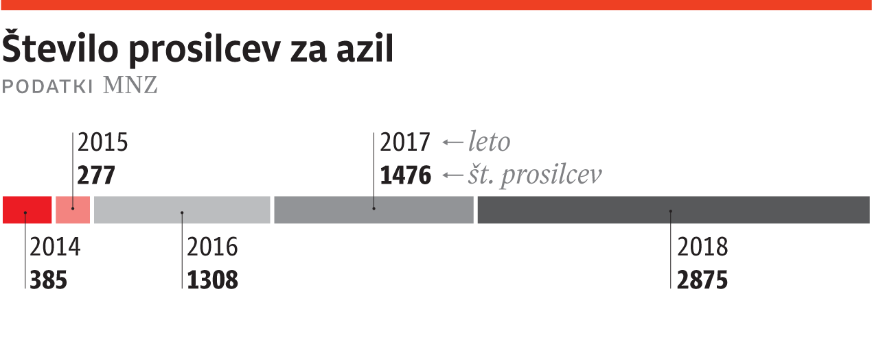 Slovenija od povprečja OECD odstopa tudi na področju mednarodne zaščite. Število prošenj za azil je v zadnjih nekaj letih močno naraslo – lani je bilo prošenj 2875, kar je dvakrat več kot leta 2016 in desetkrat več kot leta 2015. Letošnji trend je še nekoliko bolj strm. Po podatkih policije je v prvih osmih mesecih 3354 migrantov, ki so mejo prestopili na nedovoljen način, izrazilo namero, da bodo podali prošnjo za mednarodno zaščito. Kasneje, v azilnem domu, jih je prošnje sicer podalo manj – 1802. Tudi državljanska struktura prosilcev je drugačna kot v povprečju v OECD: največ prosilcev k nam prihaja iz Alžirije, Maroka, Pakistana in Afganistana.