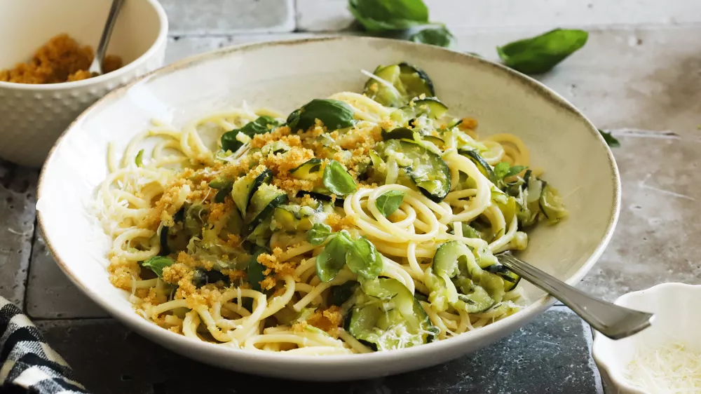 K kremnosti omake in beljakovinski delež poskrbita parmezan in žlica skute (ali kremnega sira ali mascarponeja).