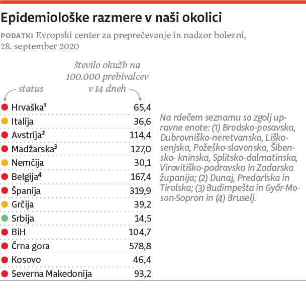 Kako pa bo pri pripravi prihodnjih seznamov? Bo Slovenija vsak teden preprosto prekopirala nemški seznam? Na ministrstvu za notranje zadeve nam na vprašanja o tem niso odgovorili konkretno. »Vlada je pri seznamih držav v največji možni meri upoštevala priporočila EU, pri rdečem seznamu pa tudi priporočila nemškega Inštituta Roberta Kocha,« so zapisali.