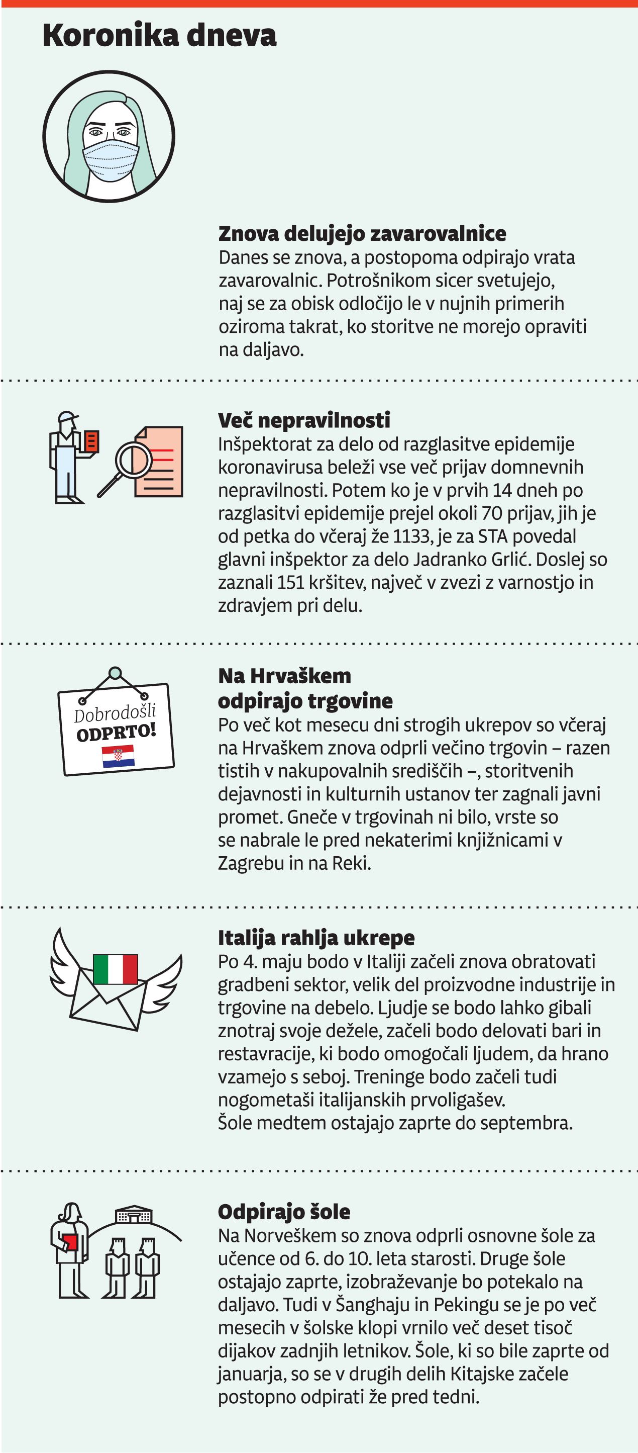 Državljani so se medtem začeli zbirati na protivladnih protestih. Včeraj so ti protesti potekali v več krajih, v Ljubljani se je denimo na Trgu republike zbralo približno dvesto ljudi, v Mariboru dvakrat več. Proteste je organizirala skupina na facebooku, imenovana Upor proti vladi Republike Slovenije 27. 4. Notranji minister Aleš Hojs je na twitterju sporočil, da je policija popisala večje število zbranih in da bodo ti oglobljeni. »Prav tako bo vložila ovadbe zoper organizatorje in udeležence, saj gre za kaznivo dejanje ogrožanja zdravja,« je napovedal. Policija je sicer svoje delo opravila korektno in ljudi praviloma le opozarjala na varnostno razdaljo, ki je predpisana z ukrepi proti širitvi novega koronavirusa.