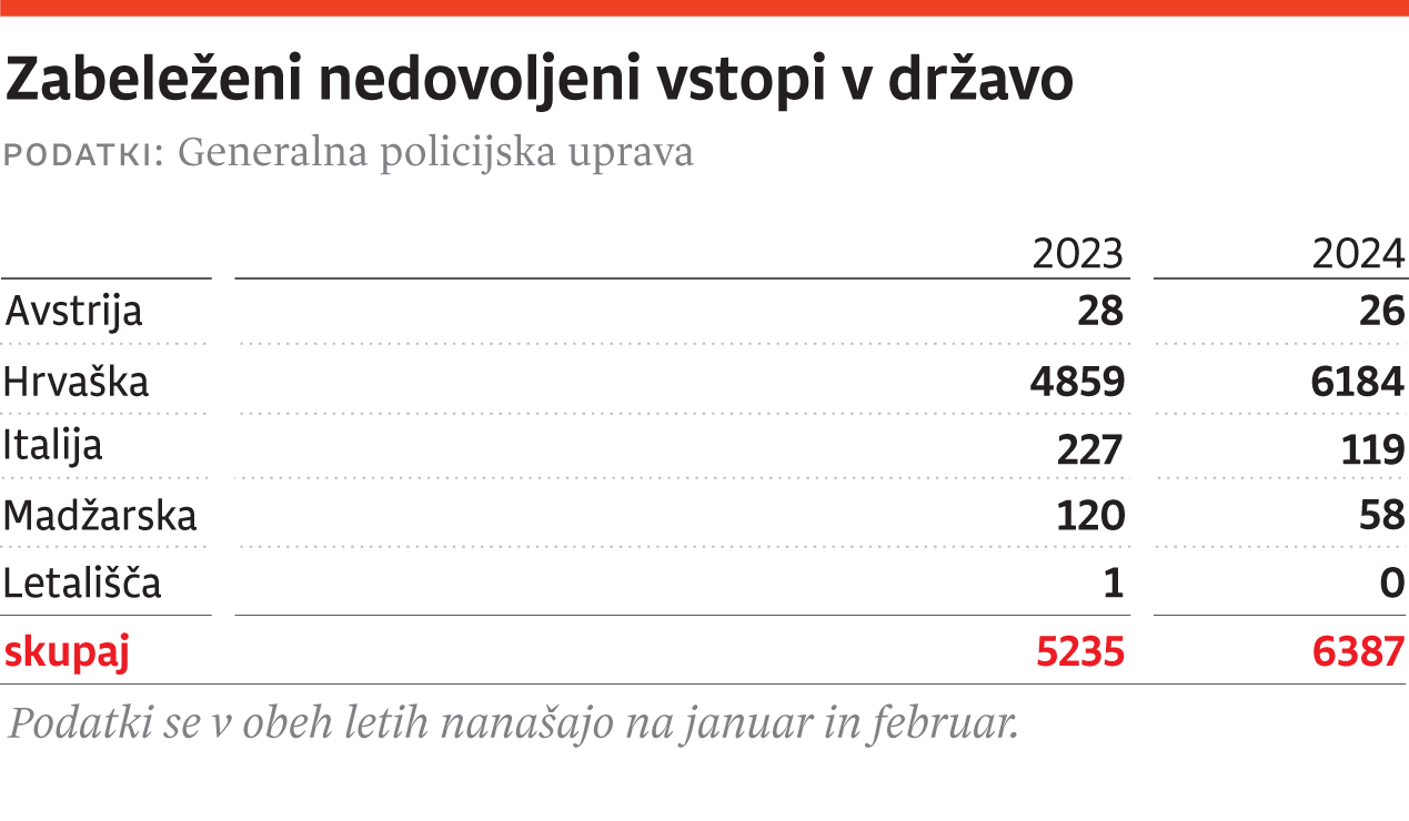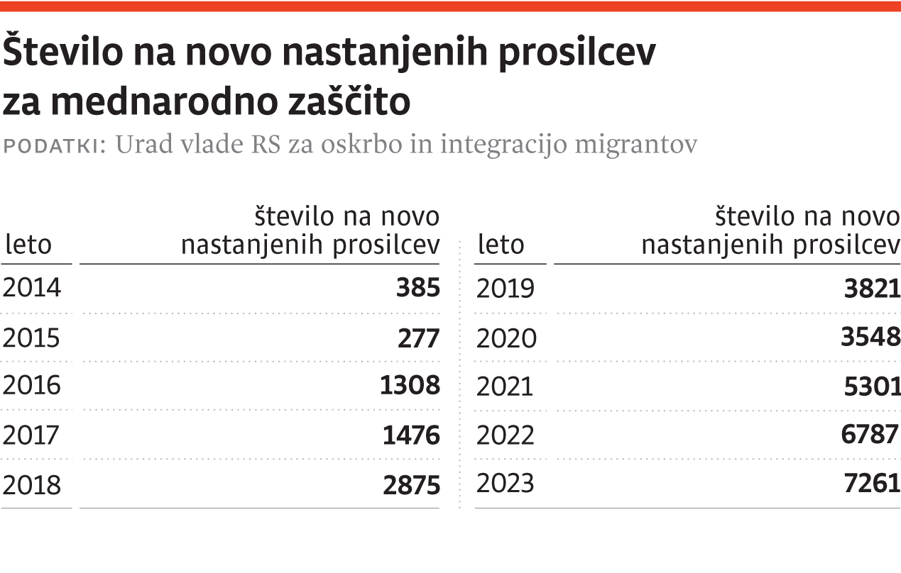 Z generalne policijske uprave so sporočili, da so samo v prvih dveh mesecih leta 2024 obravnavali kar 6387 nedovoljenih vstopov v državo, kar je 22 odstotkov več kot v enakem obdobju lani. Kar 6161 migrantov pa je izrazilo namero podaje prošnje za mednarodno zaščito. Šestega marca letos je bilo v azilnem domu na Viču nastanjenih 444 prosilcev za mednarodno zaščito ali vlagateljev namere, torej tistih, ki se še niso odločili podati uradne prošnje za mednarodno zaščito. V izpostavi v Logatcu je nastanjenih 206 prosilcev, v izpostavi v Kotnikovi ulici v Ljubljani pa 82, so sporočili iz Urada vlade RS za oskrbo in integracijo migrantov. Število na novo nastanjenih prosilcev se iz leta v leto povečuje. Če je bilo leta 2015 prosilcev le 277, jih je bilo leta 2023 že 7261.